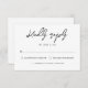 Esta tarjeta RSVP cuenta con un diseño elegante y moderno con un guión atrevido y contemporáneo. El diseño sencillo, con casillas de verificación y una línea designada para el número de invitados, garantiza respuestas muy claras a los invitados. Esta tarjeta de respuesta es perfecta para parejas que priorizan una estética limpia y un proceso RSVP eficiente.