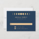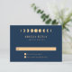 Agregue un toque de elegancia cósmica a su evento con nuestra Tarjeta de Respuesta para Boda Celestial. Sumérjase en la simplicidad encantadora de nuestro diseño, que refleja la magia fascinante de los cuerpos celestes. Nuestro diseño moderno pero atemporal muestra una serie de fases lunares representadas artísticamente en dorado sobre un llamativo fondo azul marino. Este toque de dorado añade un toque de calidez y encanto brillante a la base de azul medianoche fresco, lo que realza aún más el atractivo atractivo de la pieza. El diseño mantiene un enfoque minimalista, permitiendo que los elementos celestes realmente brillen. Puede personalizar fácilmente para satisfacer sus necesidades, asegurando que cada pieza refleje su estilo único.