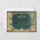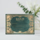 Tarjeta RSVP de boda celestial de oro verde esmeralda y falso oro