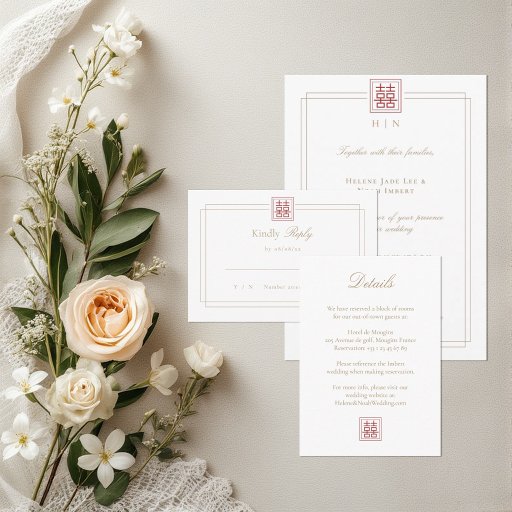 Modern Elegant Chinese Red and Gold Wedding Diseñado por Ailes2Ange