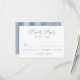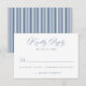 Completa tu papelería de boda con esta clásica tarjeta de respuesta de boda con caligrafía en azul marino, diseñada para celebraciones formales y tradicionales. Esta refinada tarjeta de respuesta de boda presenta una elegante letra de estilo caligráfico combinada con tipografía serif estructurada, creando un diseño atemporal que se siente pulido e intencional. El profundo color azul marino añade un aspecto personalizado y de dinero antiguo, mientras que el detalle de franja azul marino y blanca coordinada aporta un acabado sutil inspirado en la ropa de hombre. Ideal para bodas formales, lugares de finca y celebraciones de otoño o invierno, esta tarjeta de respuesta ofrece una forma sofisticada para que los invitados respondan. Personaliza la redacción para crear una tarjeta de respuesta coherente que complemente un conjunto de invitaciones de boda clásicas.