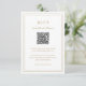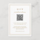 Tarjeta RSVP de boda de oro de estilo clásico con un diseño sencillo y mínimo con un código QR opcional y detalles rodeados por un borde doble (si lo prefiere, puede eliminar el código QR en la herramienta de edición de diseño). Los tipos de letra alternan entre y el guión elegante, un serif tradicional y sans serif minimalistas. Esta tarjeta de respuesta es excelente para un boda formal.
