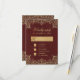 Esta tarjeta de respuesta elegante de boda color burgundy, con un aire vintage, tiene bordes dorados antiguos hacia arriba y hacia abajo con decoraciones barrocas sobre un fondo rojo burgundy. El lugar para el nombre y la pequeña casilla de verificación cuadrada son de falso foil dorado. El título "Kindly reply" y la letra M están escritos en una elegante escritura caligráfica. Todo el texto se puede personalizar y tiene un color dorado similar a las decoraciones doradas de los bordes (excepto la M caligráfica, que es de color burgundy como el fondo).