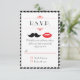 Labios rojos voluptuosos y un bigote elegante son las estrellas principales de este moderno y elegante conjunto de invitaciones de boda. El patrón de cuadrillé de perro en el fondo añade un encanto retro sin esfuerzo.