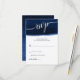 Tarjetas de respuesta RSVP de boda azul marino moderna. Si necesita ayuda para personalizar este diseño, póngase en contacto con el diseñador. ¡Nos encantaría ayudar!