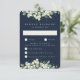 Una tarjeta de respuesta de boda marino oscuro con opciones de comida. Con un borde de bayas de nieve pintadas a mano y eucalipto en la parte delantera y una corona en la parte posterior de la tarjeta. Todo el texto es totalmente editable y los puntos dispersos en la parte delantera y trasera se pueden borrar antes de pedir si lo prefiere. Esta tarjeta está disponible con diseños botánicos alternativos y en diferentes colores. Vea la colección en mi tienda para ver todas las opciones y los elementos de coordinación.
