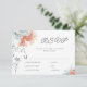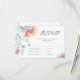 Elegante guión de caligrafía de moda tarjeta RSVP de boda con opciones de menú con flores de color azul y melocotón polvorientas con dibujo de líneas botánicas en blanco y negro. ++++++++++++ Ideal para primavera verano otoño jardín moderno bodas con temática de patio trasero al aire libre.