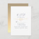 Sencilla, minimalista, moderna, elegante y polvorienta tarjeta RSVP de boda azul con elección de comida, corazón de cuerda dorada y escritura a mano de moda.