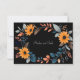 .Este diseño de tarjeta boda presenta un elegante marco floral ovalado centrado en un fondo negro profundo. El marco está formado por girasoles naranjas vibrantes, complementados por una gama de hojas y brotes azules, grises y de color melocotón, creando una armoniosa mezcla de tonos cálidos y fríos. La disposición de flores y follaje forma un borde natural alrededor de la tarjeta, por lo que es perfecto para mostrar los detalles del boda en el centro. El diseño combina la sofisticación moderna con un toque rústico, lo que lo convierte en una elección ideal para un boda que abarca tanto la elegancia como la belleza de la naturaleza. Personalice la tarjeta con sus nombres y detalles del boda. Puedes descargar la tarjeta en tu equipo móvil o computadora. Tarjeta creada con la ayuda de ai.