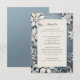 Tarjeta de detalles de follaje azul helado de invierno, con fondo azul gradiente y delicado follaje blanco de invierno.