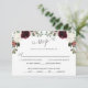 Esta elegante tarjeta RSVP de boda para Navidades es perfecta para un boda de diciembre o enero. El diseño presenta hermosas acuarelas blancas y borgoñosas con pino, bayas sagradas y vegetación de eucalipto. Este es un esquema de color perfecto para una boda de invierno. Haga que este RSVP sea el suyo propio incluyendo los detalles de su propio boda.
