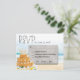 Tu amor es tan profundo como el mar, y esta hermosa temática boda lo muestra. Un pastel boda de arena, rodeado de flores de boda y coronado por una estrella de mar, se sienta en la playa junto al océano en esta tarjeta RSVP con temática playera. La elección perfecta para una boda de destino. Todo el escrito puede ser editado.