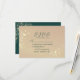 Elegante tarjeta de respuesta verde esmeralda y dorado con delicados acentos florales y letras de escritura moderna. Esta tarjeta de respuesta incluye opciones para preferencias de comida y asistencia de invitados, lo que la convierte en una adición práctica y elegante a su suite de papelería de boda. Coordina perfectamente con los diseños de "save the date" y de invitaciones a juego para un aspecto coherente.