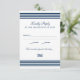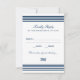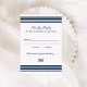 Establece un tono pulido con esta tarjeta de respuesta que presenta acentos de rayas navales clásicas y un diseño náutico limpio. “Respondan amablemente” en elegante letra cursiva se combina con líneas nítidas para nombres, aceptaciones/rechazos y recuento de invitados. Perfecto para invitaciones de boda costeras, de vela y de club de yates.
