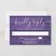 Tarjeta RSVP rústica con luces de cuerda de bonito sobre un fondo de paneles de madera de granero morado. Diseñado por Thisisnotme©
