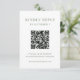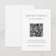 Esta minimalista y elegante tarjeta de respuesta de boda de código QR presenta un moderno texto verde sabio en un fondo blanco, para una moda, simple y elegante. Sus huéspedes pueden escanear fácilmente el código para visitar el sitio web de su boda y rsvp en línea.
