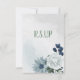 Hermosa tarjeta botánica de respuesta boda con flores románticas blancas, polvorientas azules y azul marino con hojas verdes. PARA OBTENER MÁS PRODUCTO COINCIDENTE, haga clic en la colección superior o póngase en contacto conmigo.