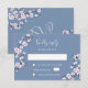 Esta tarjeta de respuesta Boda presenta hermosas flores de cerezo rosado polvoriento en un fondo azul. Invitación coincidente disponible.