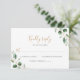 Diseñado para coordinar con nuestra colección de boda Moody Greenery, esta tarjeta de respuesta personalizable presenta una rama de eucalipto con vegetación en acuarela combinada con una fuente de escritura de moda en dorado y una fuente serif clásica en gris. Para realizar cambios avanzados, vaya a la opción "Haga clic para personalizar aún más" en Personalizar esta plantilla.