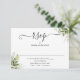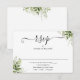 Una simple tarjeta de respuesta con detalles de follaje verde elegante en negro y blanco, con tipografía chic. Diseñada por Thisisnotme©