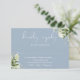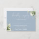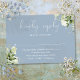 Esta tarjeta de respuesta de boda con hojas de vegetación botánica azul polvo elegante puede ser personalizada con su información en tipografía chic. Diseñada por Thisisnotme©