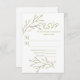 Agregue esta tarjeta de respuesta RSVP rosa suave de Boda Elegant Forest Leaves para completar su paquete de envío de Invitación a la boda. Diseñado con ramas de color verde suave sobre un fondo blanco con texto de color coincidente. El reverso incluye los primeros nombres y la fecha de Boda de Bride y Groom en un fondo blanco. Para personalizar, simplemente inserte el texto Responder por fecha en nuestra plantilla sencilla, reemplazando el texto de ejemplo.