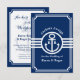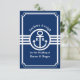 Invitaciones elegantes con tema náutico azul y blanco con textos fácilmente personalizables. El color de fondo azul y los colores del texto son personalizables.