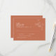 Esta tarjeta RSVP de boda tiene un cálido fondo de terracota con texto blanco en una mezcla de elegantes fuentes serif y sans-serif limpias. Las líneas de relleno sencillas mantienen la disposición clara y fácil de usar, mientras que un delicado ilustracion floral en un lateral aporta un toque romántico. El diseño es minimalista, moderno y se adapta perfectamente a un juego de papel boda coordinado