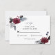 Esta elegante tarjeta RSVP presenta una combinación de colores azul marino y rojo burdeos con diseños florales góticos, incluyendo flores rojas borgoñas y follaje gris. La combinación de colores oscuros y ricos con motivos florales le da un toque de sofisticación y romanticismo, perfecto para las parejas que planean un boda de temática gótica. Personalice los detalles de su boda y encuentre diseños coincidentes en mi tienda "DreamHut".