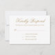Tarjeta RSVP de boda tradicional con el título "Kindly Respond" en una caligrafía elegante junto con la forma de respuesta en tono dorado sobre un fondo blanco. Este diseño clásico es perfecto para un boda formal.