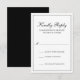 Tarjeta de respuesta de boda tradicional en clásico blanco y negro con un diseño simple que incluye "Kindly Reply" en una caligrafía elegante dentro de un borde delgado. La parte posterior es de color negro sólido. La plantilla permite a sus invitados indicar el número de asistentes. Este diseño clásico es perfecto para una boda formal.