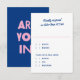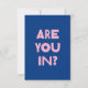 *TODOS los colores de este diseño son personalizable! Esta moderna y divertida tarjeta de respuesta boda presenta un fondo azul cobalto con el saludo rosa "¿Estás adentro?" en la parte delantera. En el otro lado, un fondo blanco clásico con una hermosa tipografía de color azul cobalto. Este diseño hace una primera impresión divertida y colorida de su boda.