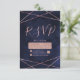 Tarjeta De Confirmación De Asistencia Boda geométrica de oro azul y Rosa de la marina RS