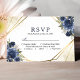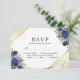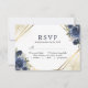Tarjeta de confirmación de boda geométrica floral azul marino oro