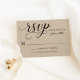 El papel kraft rústico moderno y moda y las tarjetas RSVP de bodas negras presentan un diseño tipográfico negro elegante con acentos de escritura de caligrafía audaz y un elegante texto personalizado que se puede personalizar con la fecha de vencimiento de la respuesta.