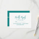 Tarjeta de respuesta de boda blanca y teal moderna minimalista con corazón de cuerda dorada en la parte posterior y simple letra de caligrafía manuscrita.