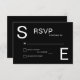Esta sencilla tarjeta RSVP para bodas minimalistas presenta fondo negro con caligrafía blanca moderna e iniciales/monograma.