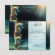 Boda náutica RSVP o tarjeta de alojamiento con dos caballitos de mar en un mundo mágico bajo el agua.