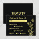 Única tarjeta de respuesta boda simple con flores de oro románticas y elegantes sobre fondo negro PARA MÁS PRODUCTOS COINCIDENTES haga clic en la colección de arriba o contáctame.