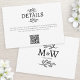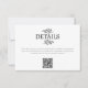 Sencilla pareja boda monograma con detalles de hojas de arte de línea botánica para una hermosa y única tarjeta de información minimalista de bodas en blanco y negro con código QR. Cambie el sitio web de destino de texto y código QR para personalizarlo.