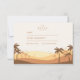 Disfrute del cálido romanticismo de una puesta de sol tropical del desierto con este minimalista diseño boda de inspiración retro. Este estilo, con dunas en suave pendiente y palmeras con silueta en tonos de siena y melocotón quemados, evoca un sueño paraíso del desierto perfecto para bodas de inspiración boho o destino. El degradado nostálgico y la disposición moderna combinan el encanto del desierto costero con la elegancia atemporal.