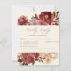 Esta elegante tarjeta rsvp de bodas floridas borgoñonas y rojas muestra los detalles de su boda con letras modernas, enmarcada en un marco ovalado de blanco polvoriento con flores acuarelas y follaje botánico en tonos tierra inspirados en el desierto con color burdeos, rojo, marrón y marfil con un texto de color cobre cálido.el toque de marco vintage hace única esta invitación floral vintage.Un perfecto hijo criado tarjeta rsvp de boda para bodas de verano, otoño de primavera y bodas de invierno.