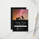 Elegante tarjeta RSVP de boda con una romántica silueta de pareja en un hermoso fondo estrellado.