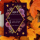 Boda de dahlia otoñal romántica: Hojas otoñales acompañan un marco floral en varios matices morados