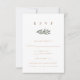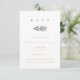 Elegantes tarjetas RSVP de bodas botánicas acuáticas con hermosas ramas de olivo dibujadas a mano que enmarcan los detalles de su boda.