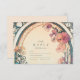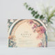 Una encantadora invitación a una boda floral con flores de color rojizo y suaves flores de índigo, abrazadas por un follaje Art Nouveau fluido. El diseño vintage del arco oval y los tonos tierra evocan un ambiente de jardín de ensueño, perfecto para una romántica ceremonia al aire libre o un elegante boda de otoño.