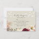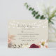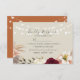 Esta tarjeta RSVP presenta una combinación moderna de estilo rústico y boho, con un telón de fondo de naranja rústico quemado y flores de borgoña. Las luces de cadena Delicadas le dan un toque de fantasía, mientras que el sencillo guión caligráfico le garantiza un aspecto elegante y acogedor. Es un reflejo perfecto de la mezcla única de sofisticación y encanto de su boda.