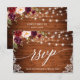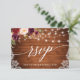 Madera Rústica, Caligrafía Moderna, Acuarela Borgoña Marsala Floral Tarjeta de RSVP de Encaje con Rosas Borgoña y Rosadas. Luces de Cadena Brillantes.