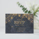 Tarjeta De Confirmación De Asistencia Boda Rústica Glam Azul Marino Dorado