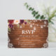 Boda Rústica Luces de Cadena de Madera Jarras de Mason Encaje Floral Acuarela Borgoña RSVP Tarjeta